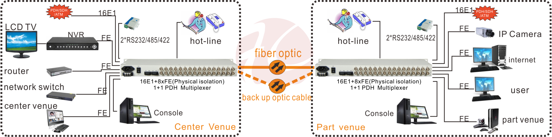 16E1+8xFE(Physical isolation) 1+1 PDH Multiplexer