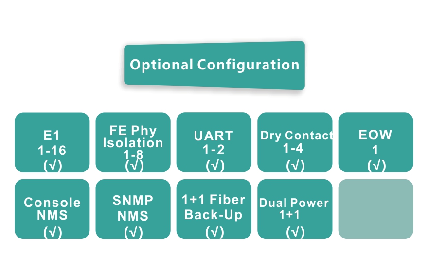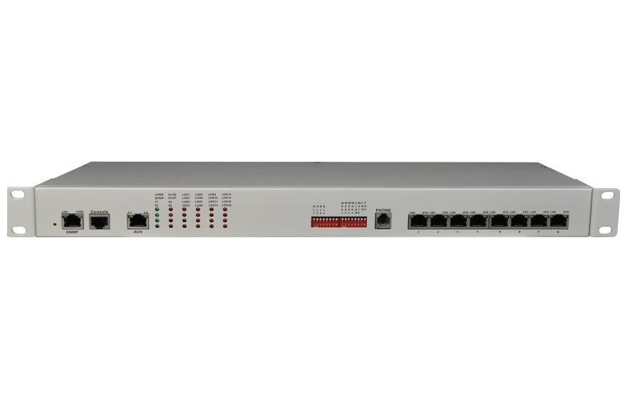 This series of equipment is developed by the company PDH optical fiber transmission for ultra-large scale integrated circuit based on the development of point-to-point optical transmission equipment. Provides 1 ~ 16 E1 interface, the main optical fiber interface and backup fiber interface, 8*physical isolation 10/100M Fast Ethernet interface (independent 8* wire speed 100M), and 2 extended business interface. 2*extended service interface can be used as RS232/RS485/RS422 asynchronous data/TTL signal, the application is very flexible. Optional digital business phone, optional Console serial network management, optional independent SNMP network management.