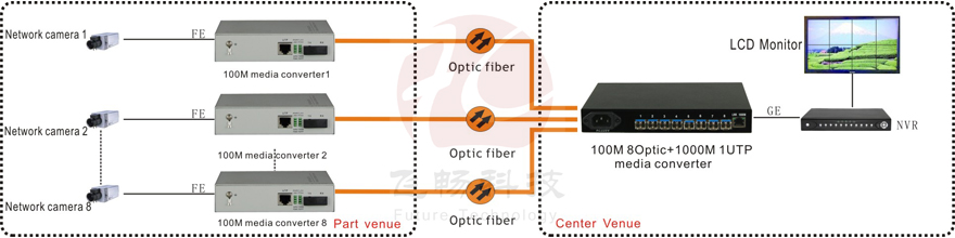 This series of products is the IEEE802.3 Ethernet media converter can be achieved between two media 8 road 100base-FX and road 1000base-T 1 medium conversion or extension of the network transmission distance mainly used for optical fiber network distance (20/40/60/80/120) transmission the transmission rate and full support for 10/100/1000M for 1-8 road optical Ethernet aggregation to route 1 Gigabit Ethernet port of the occasion.