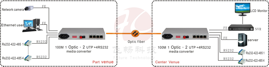 Description:single core optice fiber transmission 2 * 10/100M network port and 4 * RS232/422/485 interface