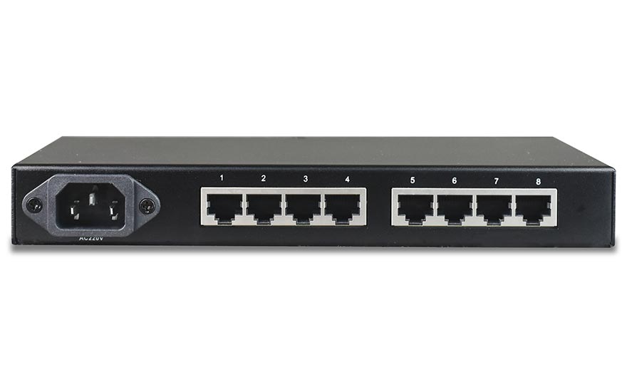 The converter encapsulates the voice data in the IP packet supports the UDP packet mode realizes the 1-8 voice service to the 100M Ethernet conversion in the same network segment or through the router to achieve different network segment communication.