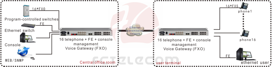 Voice port support FXO / FXS / two /four-wire EM / two-wire audio / magnet telephone interface FXO port and program-controlled switches docking FXS port and the user's telephone connected;