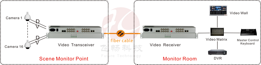 This digital video optical transceiver adopts digital video encoding and gigabit optical fiber transmission technology. The multi-channel single-direction bi-direction audio, video, data, telephone, Ethernet and switch real-time synchronization, no-distortion and high quality transmission is on the single-core or dual-core optical fiber. Complete digital video non-compression transmission technology, with video and data condition indicator, can monitor the system normal operation. It uses modular design, the user can flexibly select or customize configuration based on the scene occasion. Rack installation or desktop installation can be optional. This product is made up of optical transmitter and receiver. It can transmit 16Channel forward direction Video and 1Channel reverse direction RS485 data.