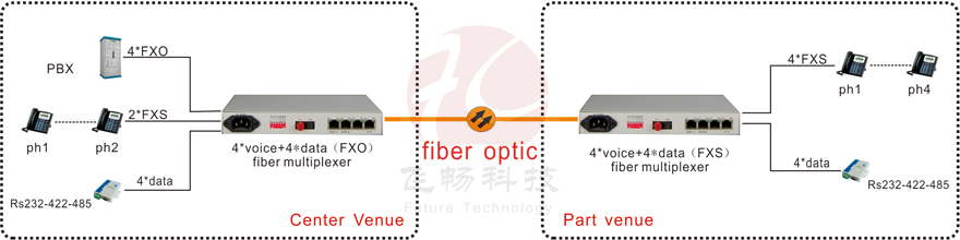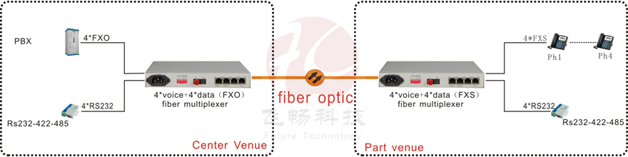 This device is a desk-top PCM multiplexer that can provides 1-4 channel FXO/FXS telephone and 4 channels RSS232/422/485 interface wall-mouthed or 4U rack plug-in support the SNMPA service.