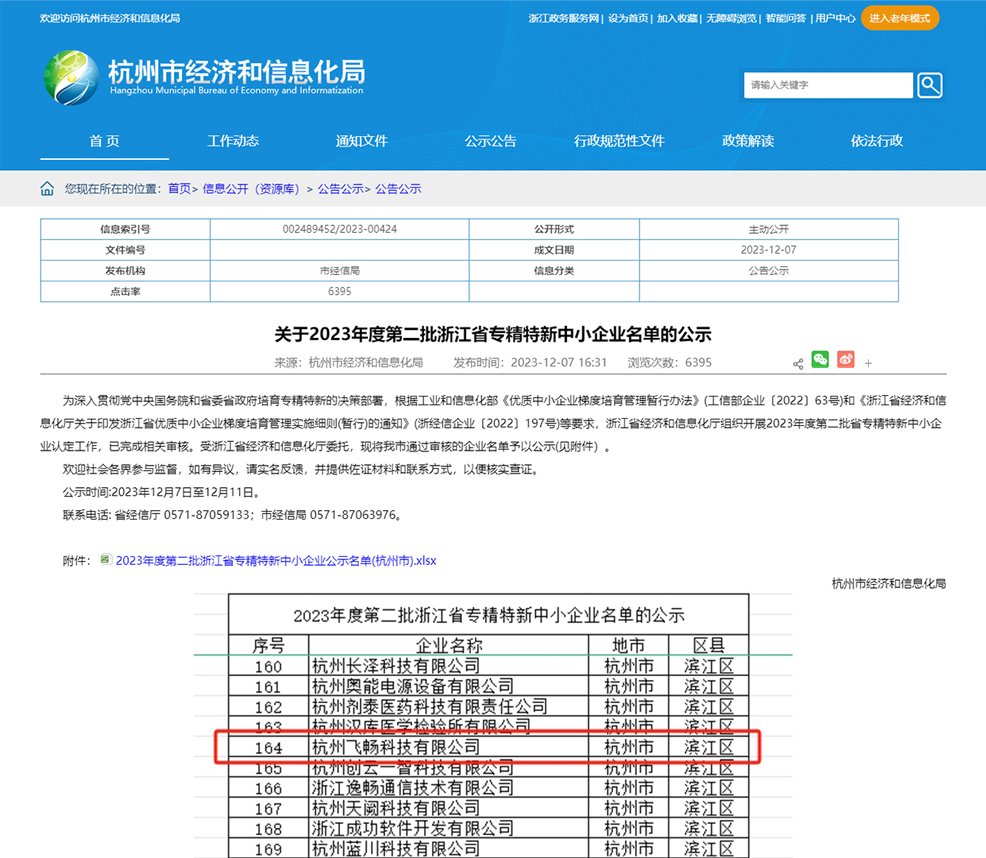 近日,浙江省公布了2023年度專精特新中小企業(yè)名單,飛暢科技憑借其在科技創(chuàng)新領(lǐng)域的卓越表現(xiàn)榮獲此殊榮。