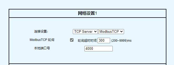 3、網(wǎng)頁上 設(shè)置電口狀態(tài)為 Tcp Server ModbusTCP