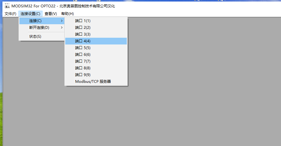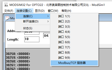 2、電腦上打開從機模擬軟件modsim, 連接設(shè)置選擇modbustcp服務(wù)器,端口設(shè)置和步驟1中的端口一致。