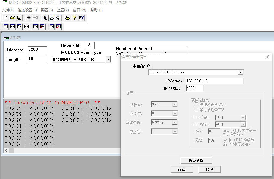6、電腦上打開主機模擬軟件modscan,modbus設(shè)置和從機一致