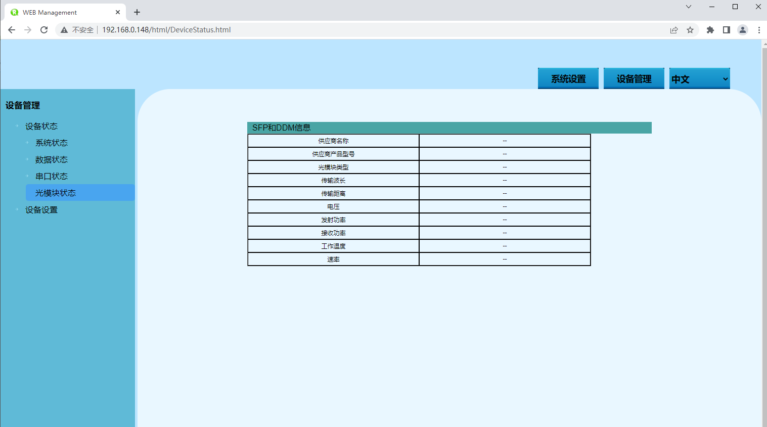 按順序依次打開:“設備管理 > 設備狀態(tài) > 串口狀態(tài)(網(wǎng)絡狀態(tài)/光模塊狀態(tài))”。。