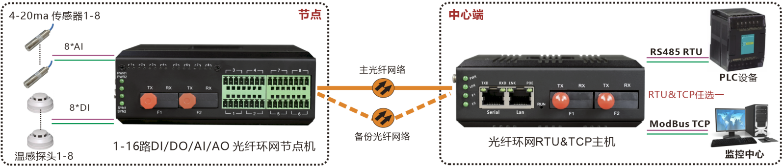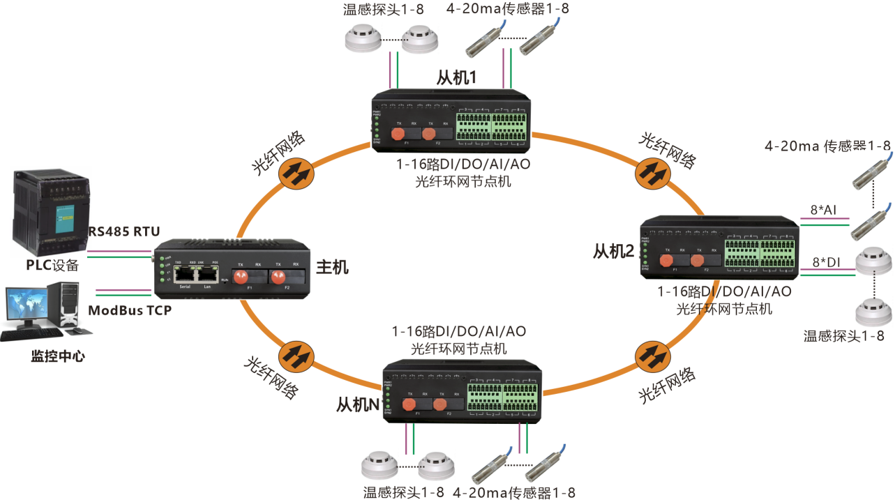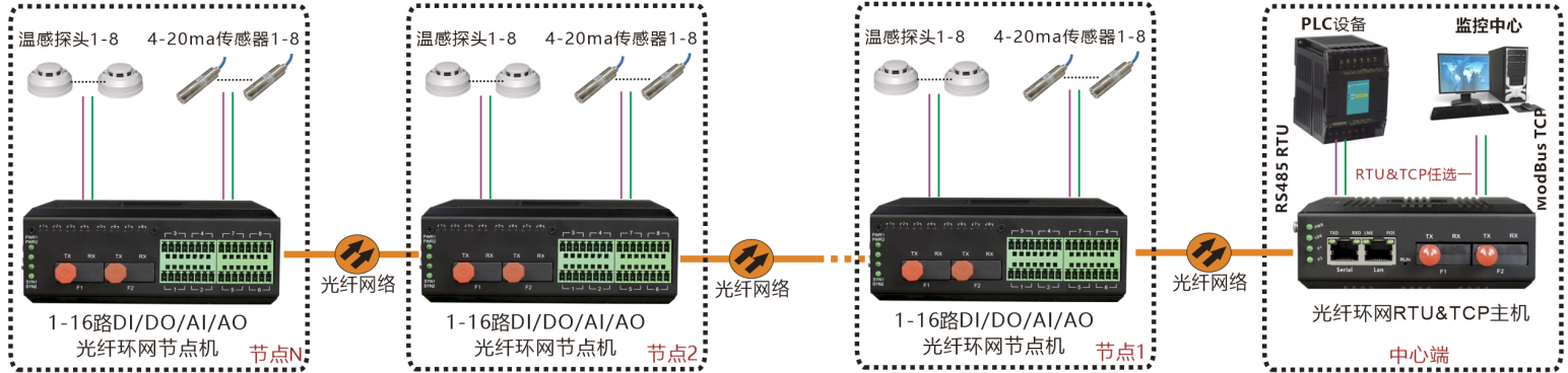 描述:工業(yè)級(jí)環(huán)網(wǎng)型光端機(jī)提供每個(gè)節(jié)點(diǎn)最多16路DI/DO/AI/AO在光纖中傳輸,支持多種光纖網(wǎng)絡(luò)拓?fù)浣Y(jié)構(gòu):點(diǎn)對(duì)點(diǎn)通訊、鏈型網(wǎng)絡(luò)、星型網(wǎng)絡(luò)及冗余環(huán)網(wǎng)自愈保護(hù)等拓?fù)浣Y(jié)構(gòu),并可在此基礎(chǔ)上組網(wǎng)