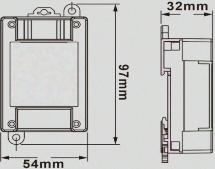 尺寸:97mm(長) x 54mm(寬) x 32mm(高)安裝方式:35mm導軌安裝、壁掛式安裝 |