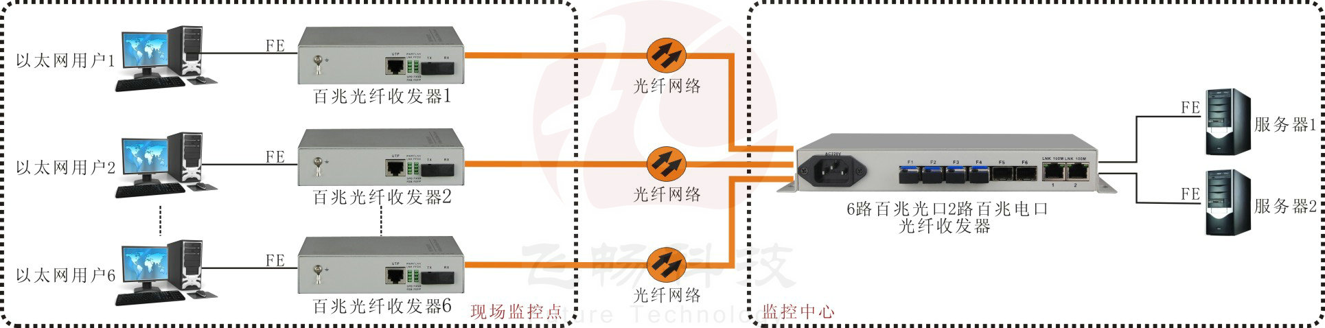 • 飛暢科技-6光2電 百兆光纖收發(fā)器
