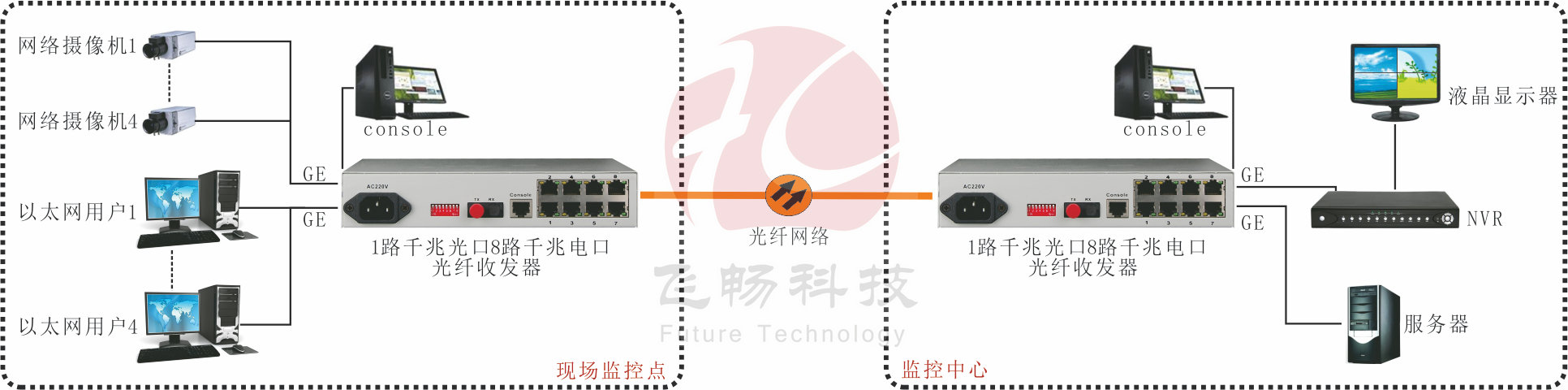 • 飛暢科技-8路千兆以太可配置VLAN型光纖收發(fā)器